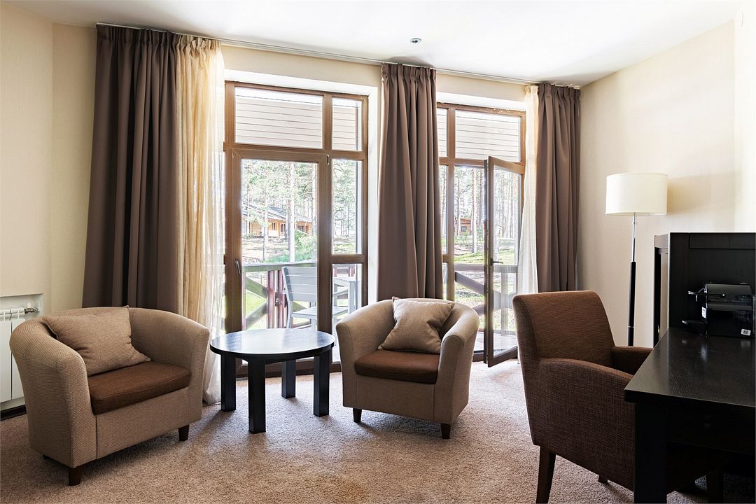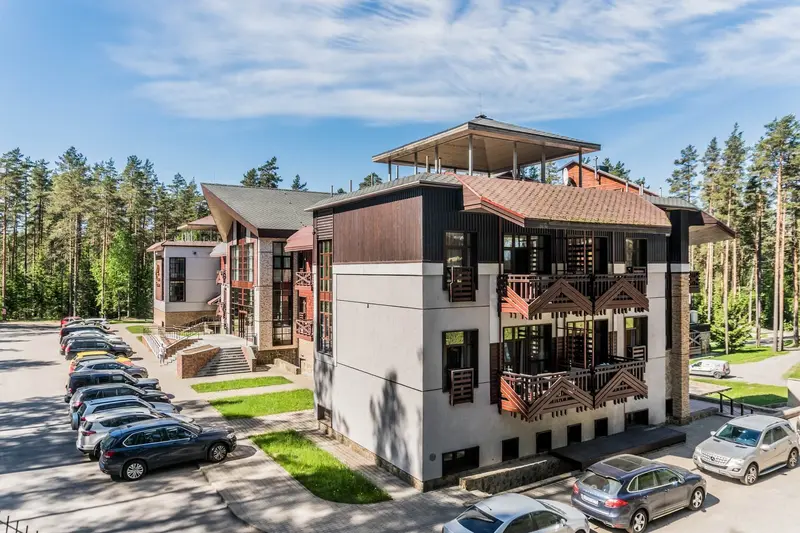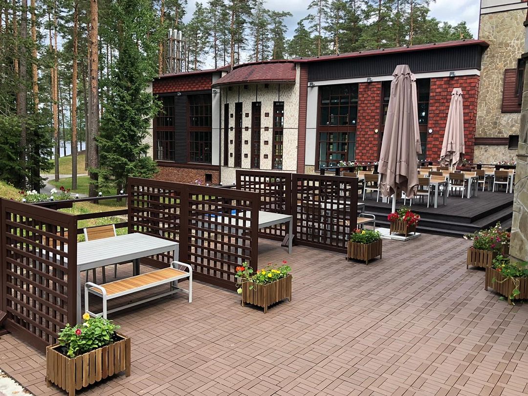 Короткий отпуск с друзьямиОчень хорошоНаверное, лучшее соотношение цена-качество в Ленобласти. Территория великолепная - сосны, озеро, можно гулять целый день. Большой бассейн. Номера не новые, но просторные. Дизайн, конечно, мрачноватый, его бы обновить... Еда в ресторане неплохая, а если с видом на озеро, то полный дзен. Завтраки хорошие. Единственный момент - на завтраке удивили сотрудники ресторана из стран СНГ, практически не говорящие на русском, работающие на раздаче и при этом 'тыкающие' гостям. В остальном все было замечательно.
