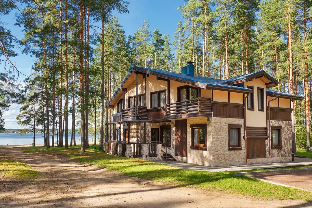 Коттедж “Озерный” имеет 4 апартамента. Коттедж находится в лесу, недалеко от озера, где есть место для купания. Апартамент представляет собой номер с большой гостиной на первом этаже и просторной спальней на втором. Около коттеджа предусмотрен мангал. В каждом апартаменте: балкон, микроволновая печь, чайник, телевизор с плоским экраном, телефон, WiFi.Услуги и удобства