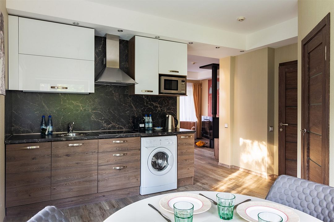 телевизор, Wi-Fi, фен, система безопасности, кофемашина, микроволновая печь, дополнительный санузел, теплый пол, халаты, банные полотенца, тапочки, косметические средства, балкон, двуспальная кровать, диван, стулья, шкаф для одежды, журнальный столик, зеркало, чайный набор, набор посуды, обслуживание номеров, посудомоечная машина, чайник, косметическое зеркало, питьевая вода, отопление, отдельный вход в номер, душ, плиточное покрытие, кухонная посуда, стаканы, столовые приборы, мангал, раскладное кресло, мини-кухня, москитная сетка, теплые полы, чайная станция, уборка номера, набор для приготовления чая и кофе, услуги прачечной (платно), бутилированная вода, вода из артезианской скважины, прачечная (за дополнительную плату), без питомцевВ апартаментах