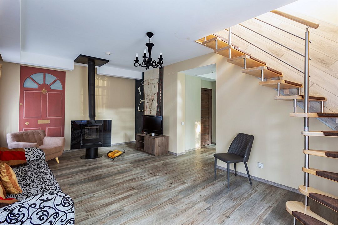 телевизор, Wi-Fi, холодильник, светильник, фен, система безопасности, плита для приготовления пищи, кофемашина, микроволновая печь, санузел, дополнительный санузел, теплый пол, халаты, банные полотенца, тапочки, косметические средства, сауна, балкон, терраса, двуспальная кровать, диван, шкаф для одежды, обеденный стол, зеркало, две комнаты, чайный набор, набор посуды, обслуживание номеров, чайник, мягкая мебель, обеденная зона, отдельный вход в номер, душ, плиточное покрытие, мангал, мини-кухня, можно с питомцами, игрушки, миска, пакетик для выгула, пеленкаВ апартаментах