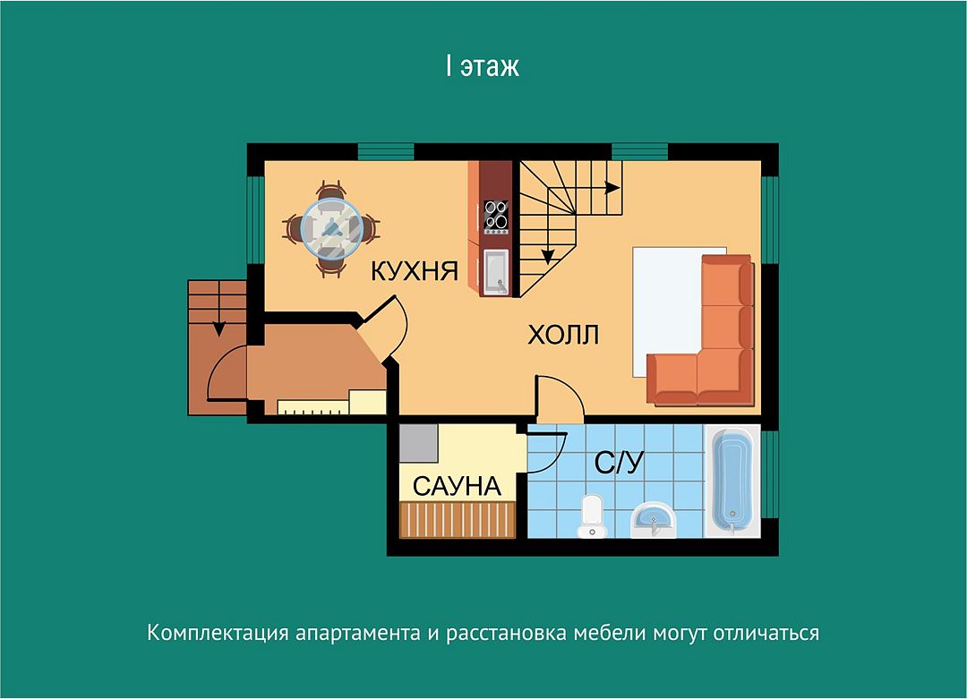 50 м2 · 2-х местный апартаменты + 1 доп. место