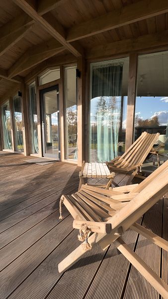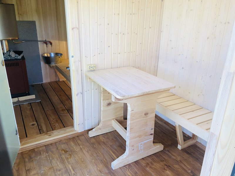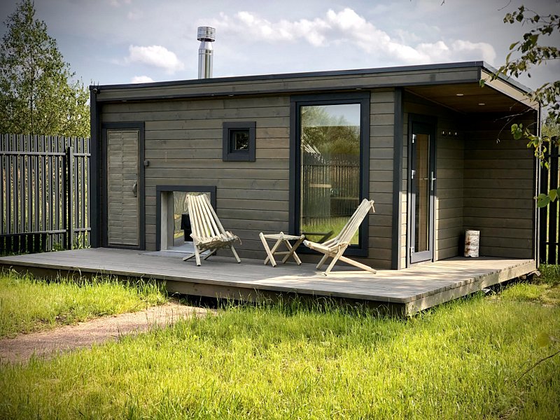 Рядом с домом уютная мангальная зона с мангалом, костровой чашей и удобными большими креслами. Среди услуг — русская баня на дровах.