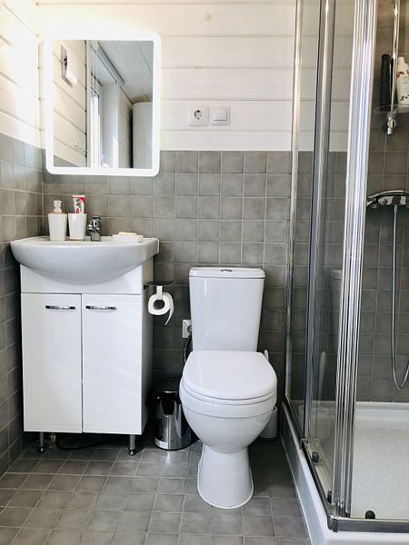 - Кухня-гостиная, спальня и ванная комната с душем