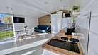 - Большая двуспальная кровать и двуспальный диван в кухне-гостиной