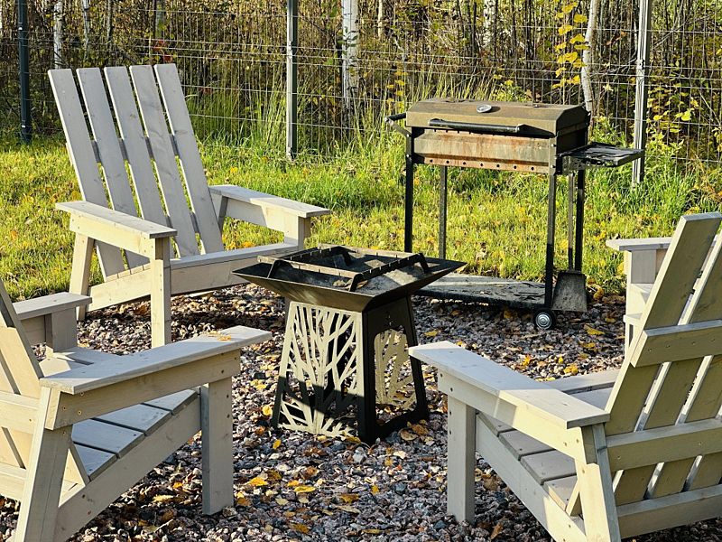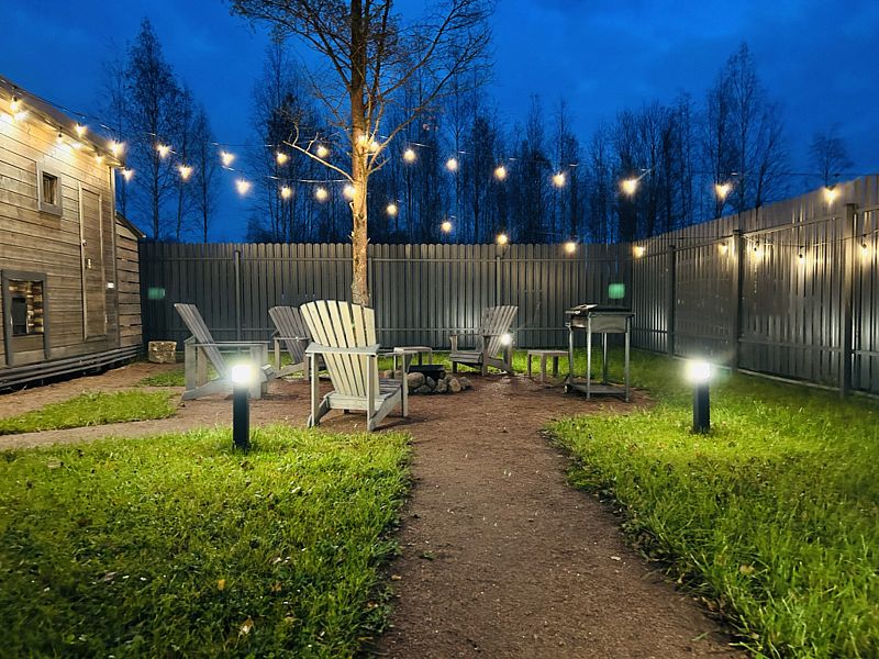 На территории глэмпинга есть русская баня на дровах, которая находится на одном участке с коттеджем, зона барбекю с костровой чашей и мангалом, предоставляются дрова и пледы для уличных посиделок.