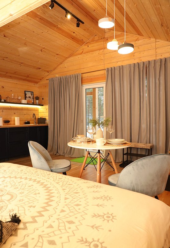 Здесь каждый домик создан для того, чтобы предоставить вам уютное и комфортное пребывание. Просторные террасы позволят вам насладиться утренним кофе в лучах восходящего солнца или провести вечер в теплой компании, наслаждаясь лесным пейзажем. Благодаря панорамным окнам и террасам, вы сможете насладиться видами на живописные лесные массивы, вдыхать свежий воздух и слушать шелест листьев и пение птиц
