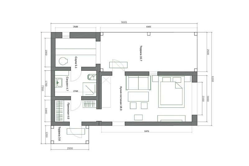 - Диван в гостиной как доп. место (спальное место 140 см);