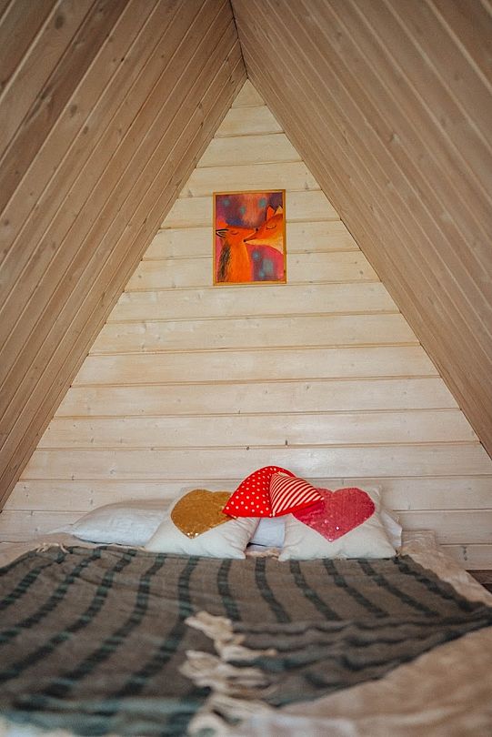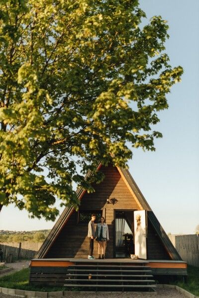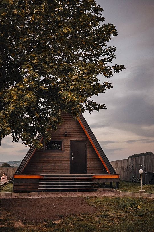 Уютный дом-шалаш для четырех гостей в двадцати минутах от города. Гостевой дом расположен в деревне на частной территории, на которой есть еще два домика.
