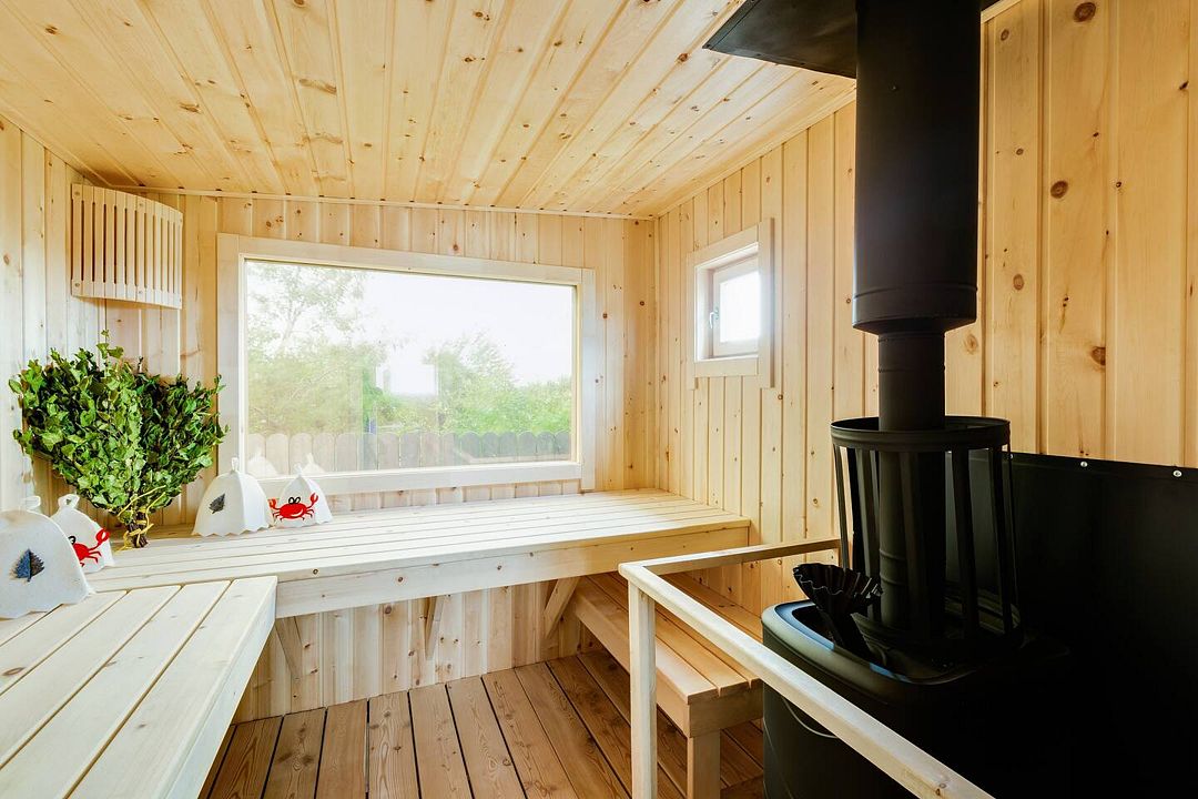 Читать полностьюВ гостевом доме «Лиса в шалаше» гостей ждет кедровая парная с панорамным окном, где температура достигает восемьдесят градусов Цельсия. Комфортная комната отдыха вмещает до четырех человек и предлагает насладиться чаем, сушкой и вареньем.