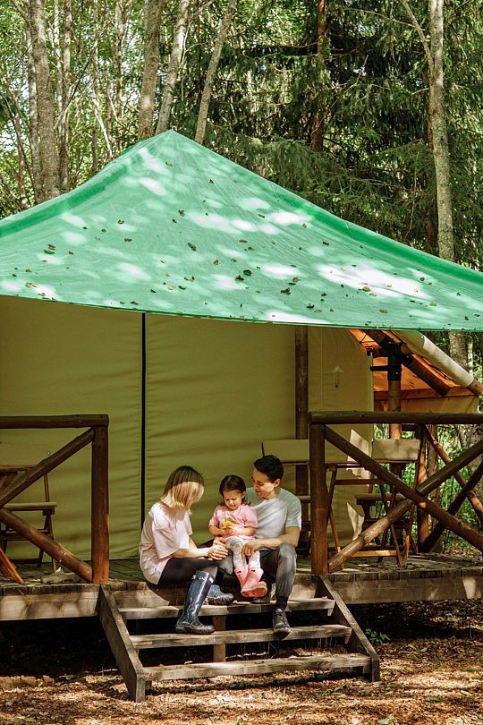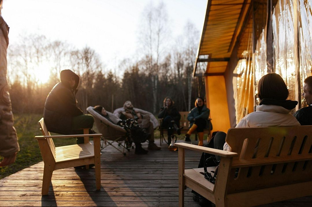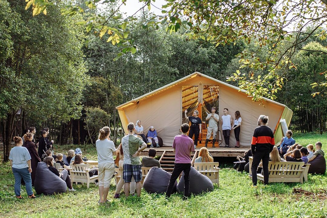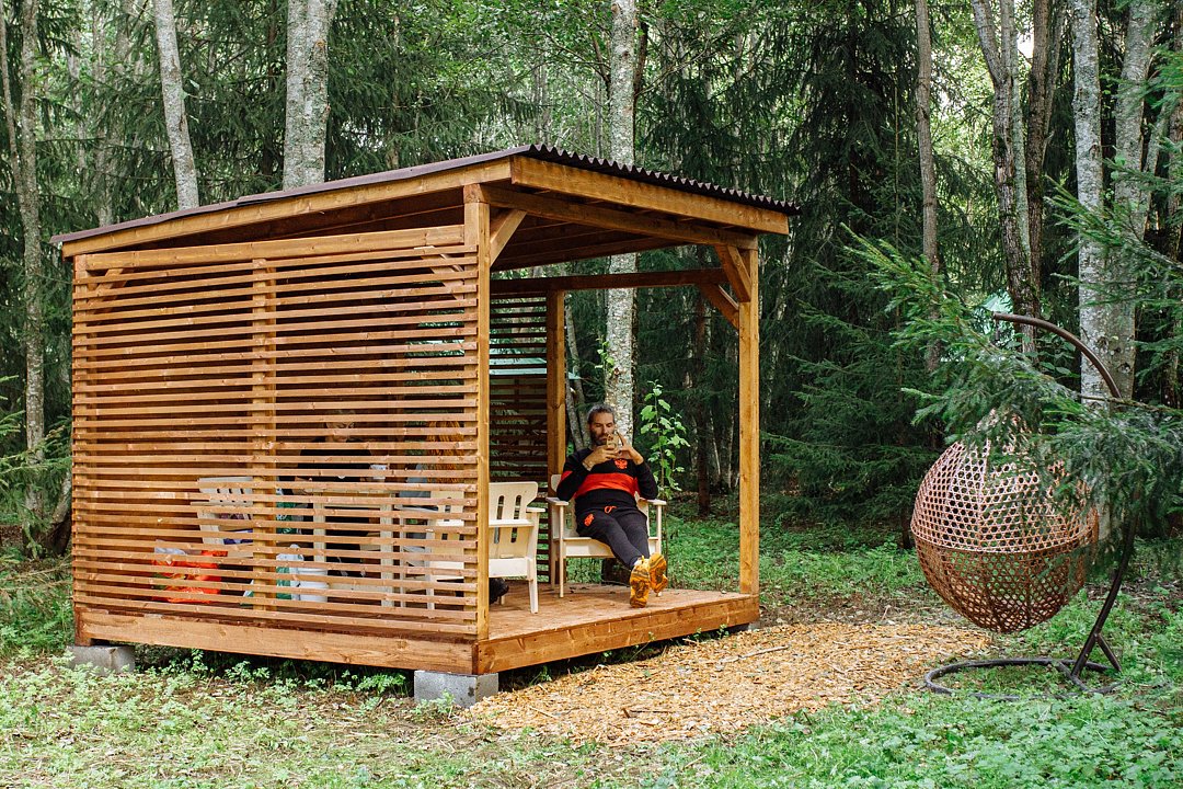 Особое внимание уделено организации мероприятий любого формата. На просторном участке леса разместился пати-тент, который станет идеальной площадкой для тимбилдинга, ретрита или фестиваля. Уютные беседки приглашают отдохнуть вдвоем или всей семьей, а костровая зона объединяет гостей вокруг живого огня, создавая атмосферу тепла и единства.