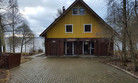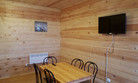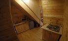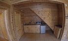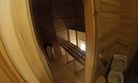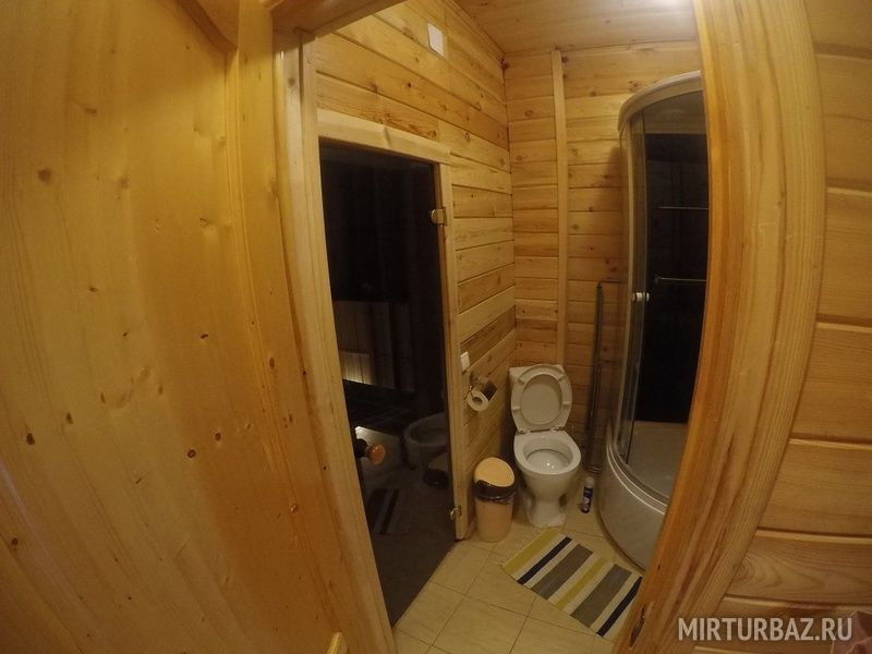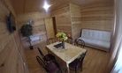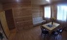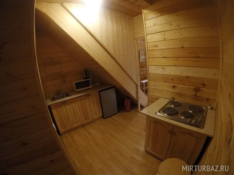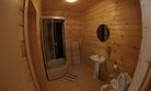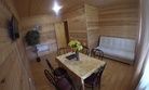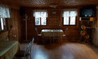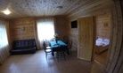 1 этаж – небольшой холл с мягкой мебелью и камином, полностью оборудованная кухня (плита, холодильник, вся необходимая кухонная и столовая посуда), парная на дровах, санузел с душевой кабиной, терраса с видом на озеро (самый ближний к озеру коттедж, до озера 20 метров)