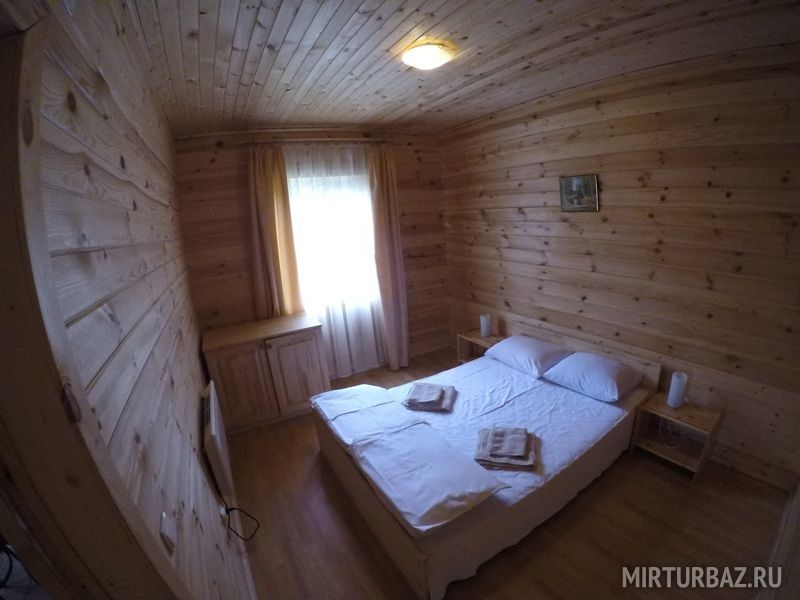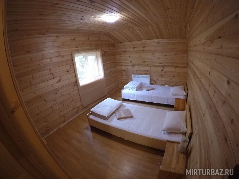 2 этаж – две спальни, в каждой две раздельные кровати либо двуспальная кровать, тумбочки, шкаф для одежды, отдельный санузел с душевой кабиной; просторный балкон с видом на озеро.
