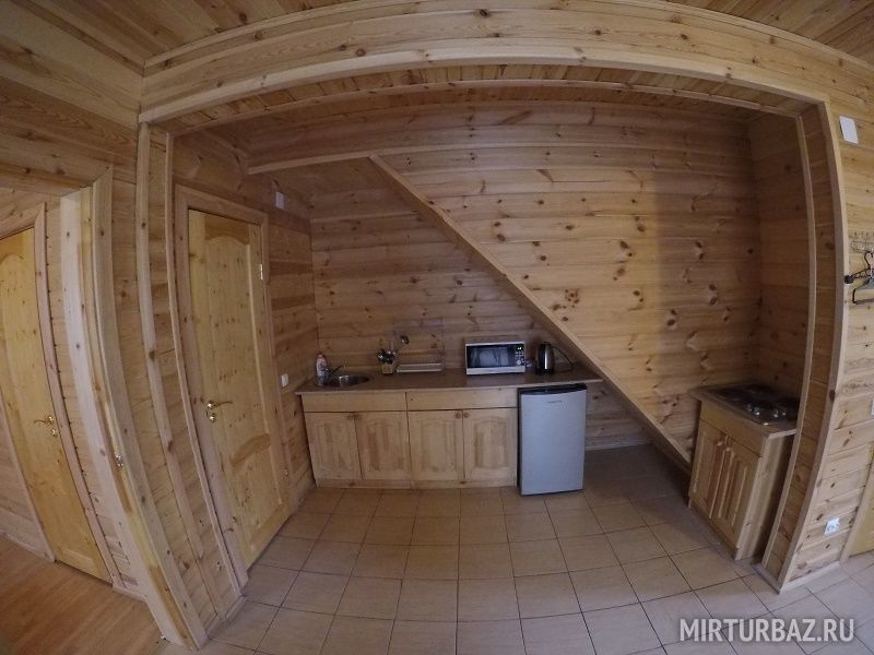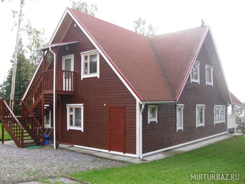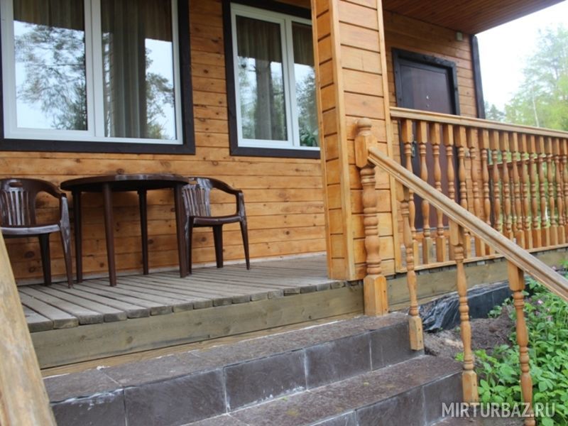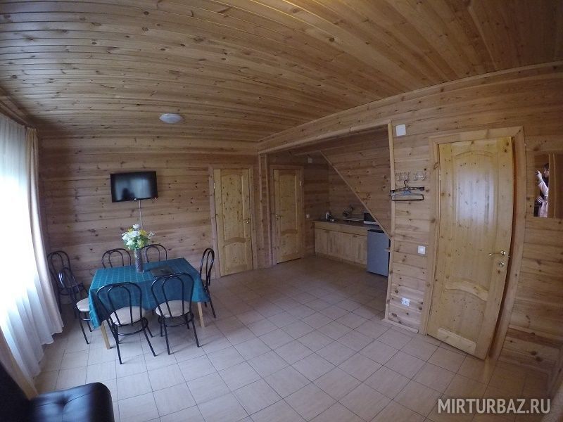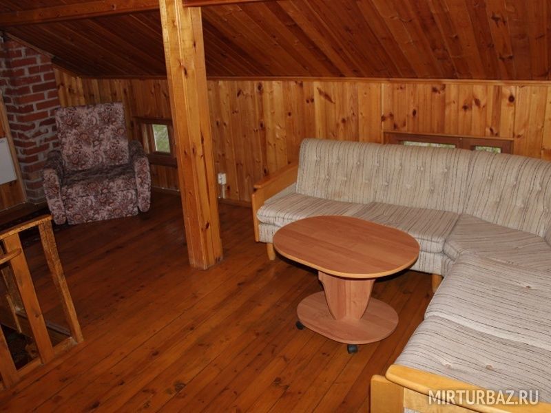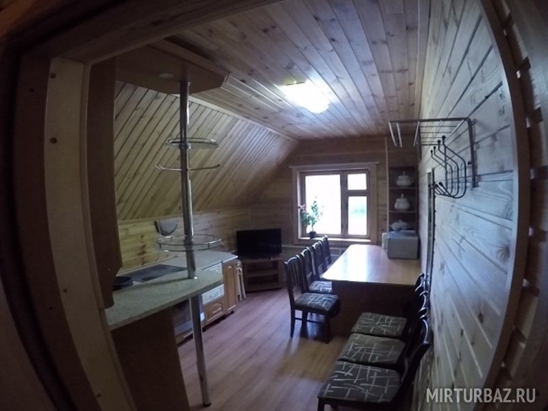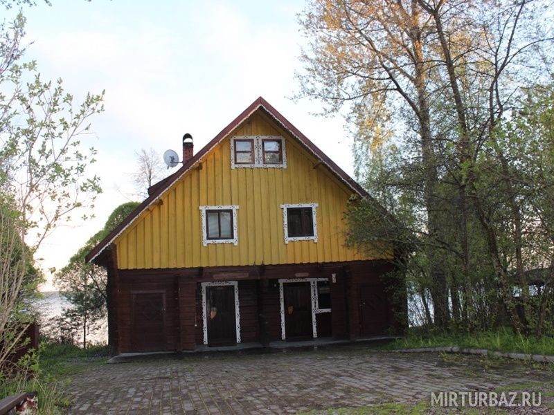 1 этаж – просторный холл с мягкой мебелью, обеденным столом, спутниковым телевидением, оборудованная кухня (плита, холодильник, вся необходимая кухонная и столовая посуда), спальня с двуспальной кроватью либо двумя раздельными кроватями, санузел с душевой кабиной, веранда с видом на озеро.