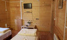 Просторный номер с двуспальной кроватью и двумя дополнительными кроватями, TV, санузел с душевой кабиной, большая терраса с видом на озеро. Расположены на втором этаже.
