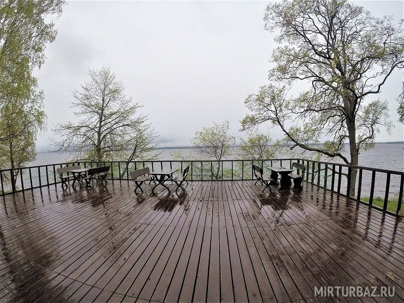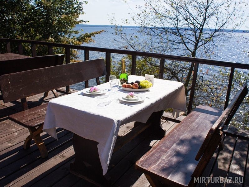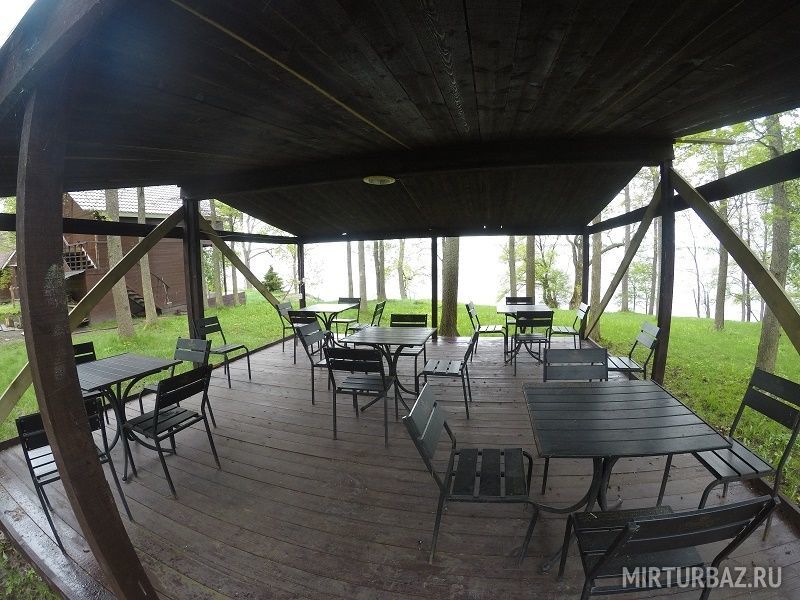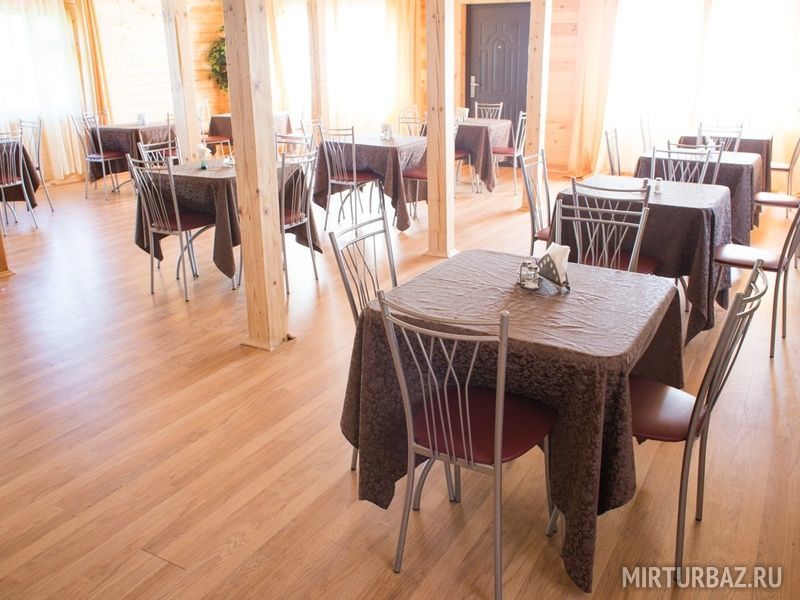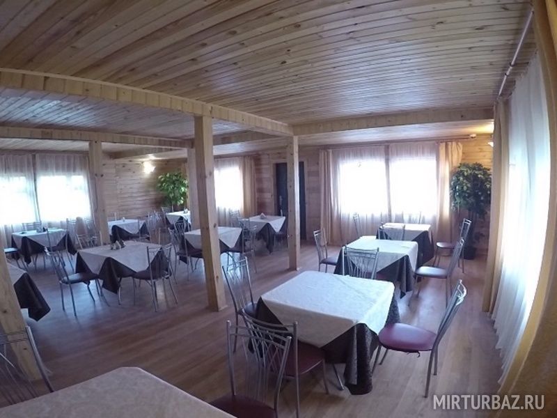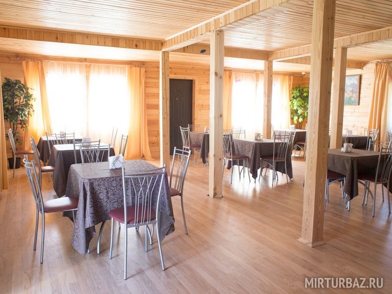 Читать полностьюНа территории комплекса работает ресторан на 60 посадочных мест. Ресторан находится на берегу озера. Имеет открытую террасу с видом на воду.
