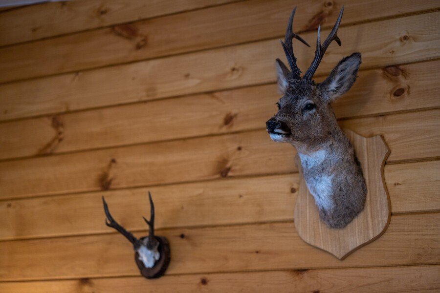 Для вас есть все необходимое для комфортного проживания: микроволновая печь, 2-конфорочная индукционная плита, кондиционер, холодильник. У нас чистая питьевая вода из Ломоносовского горизонта и фильтр «АКВАФОР». В доме только новая мебель и техника, посуда и декорации: трофейные головы животных, свечи, мягкие пледы.