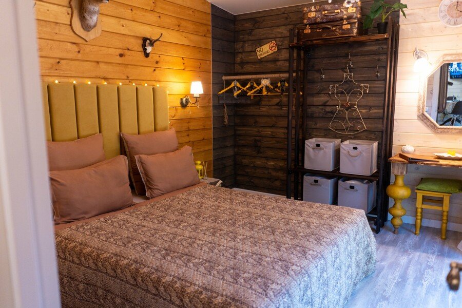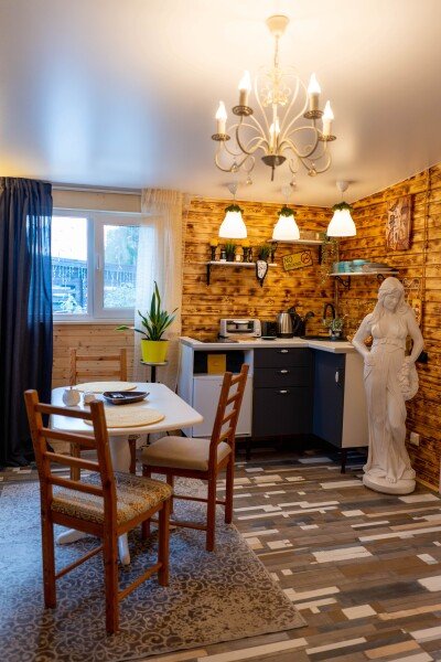 Атмосфера комфортного и осовремененного дома чудака Мэрлина идеальна для романтиков и мечтателей. Здесь как нигде ранее Вы будете спать как младенец в люльке. В доме для Вас (включено в стоимость проживания): чай, кофе, сливки, соль, сахар и сахарозаменитель. Махровые тапки, по 3 новых полотенца на каждого гостя. Одноразовые зубные щетки и паста.