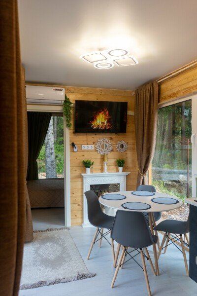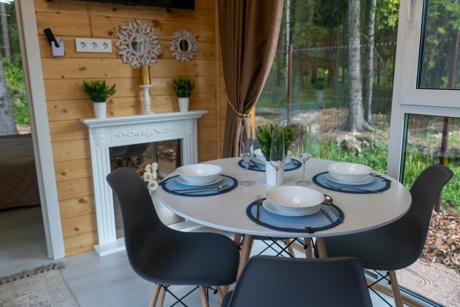 Каждый дом оснащен всем необходимым: от современной мебели и техники до посуды, что обеспечивает максимальное удобство для вас. Теплые полы создают атмосферу уюта, а Wi-Fi и SMART-TV добавляют привычные элементы комфорта в загородную жизнь.