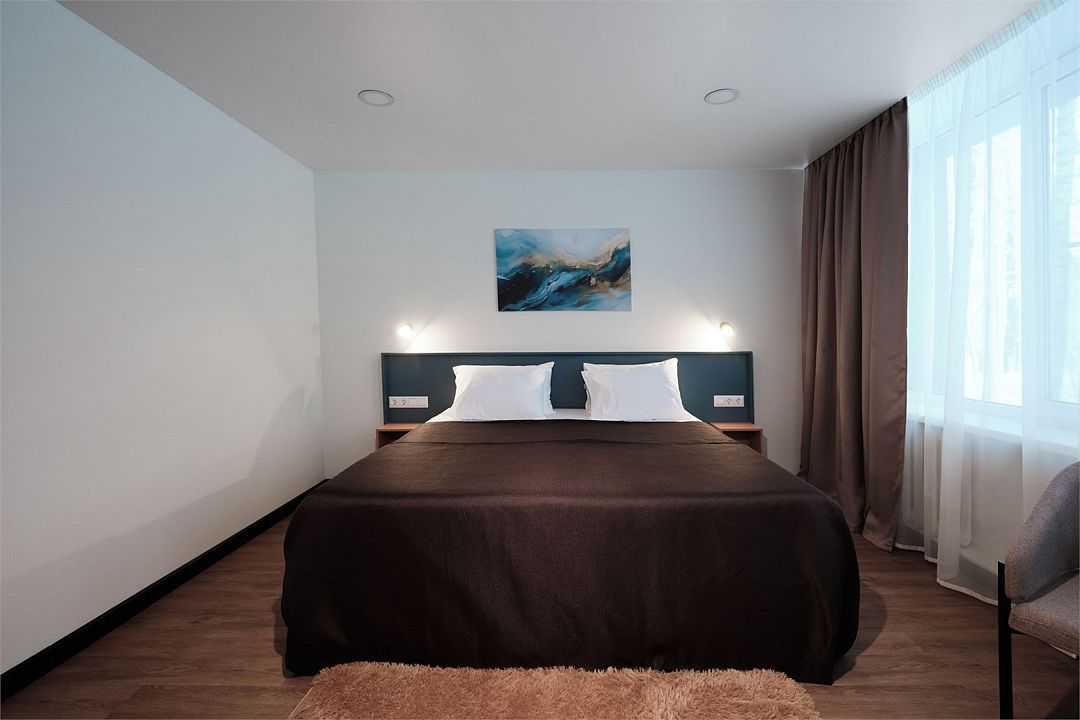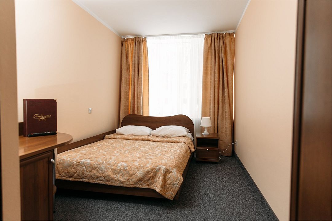 Просторный номер категории комфорт с одной большой или с двумя односпальными кроватями, подойдет для проживания двух человек или семьи . В комнате имеется все необходимое: телевизор, холодильник, прикроватные тумбочки. В ванной комнате данной категории номеров располагается душевая кабина. Есть возможность установки дополнительного спального места. Номера находятся в пятом корпусе.