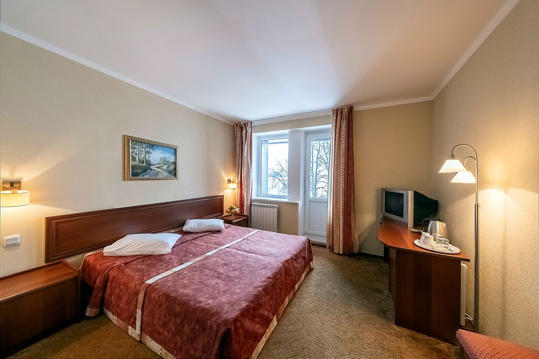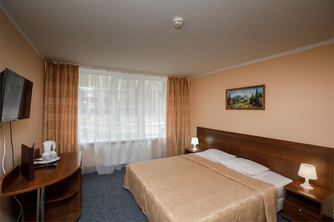 Стандартные номера могут быть с двумя односпальными кроватями или одной двуспальной, подойдут для размещения одного - двух человек. Номер небольшой по площади, тем не менее, комната оборудована всем необходимым: телевизором, холодильником, прикроватными тумбочками. В ванной комнате данной категории номеров располагается душевая кабина. Номера находятся во втором и четвертом корпусах.