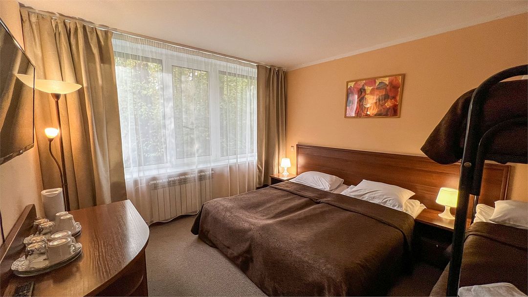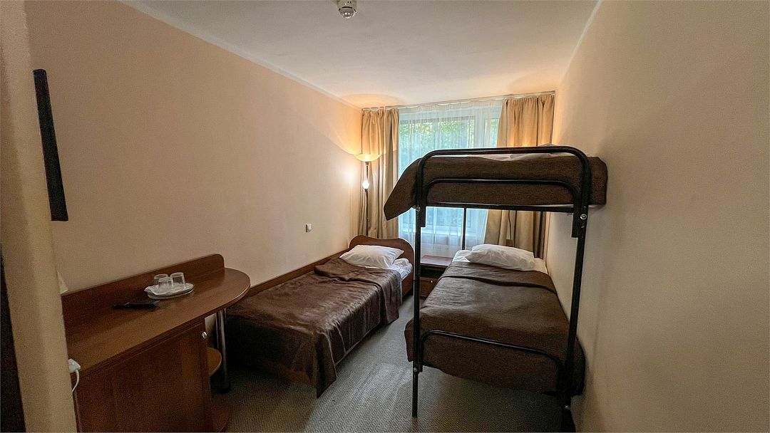 Одна односпальная кровать, одна двухъярусная кроватьВ гостиничном номере