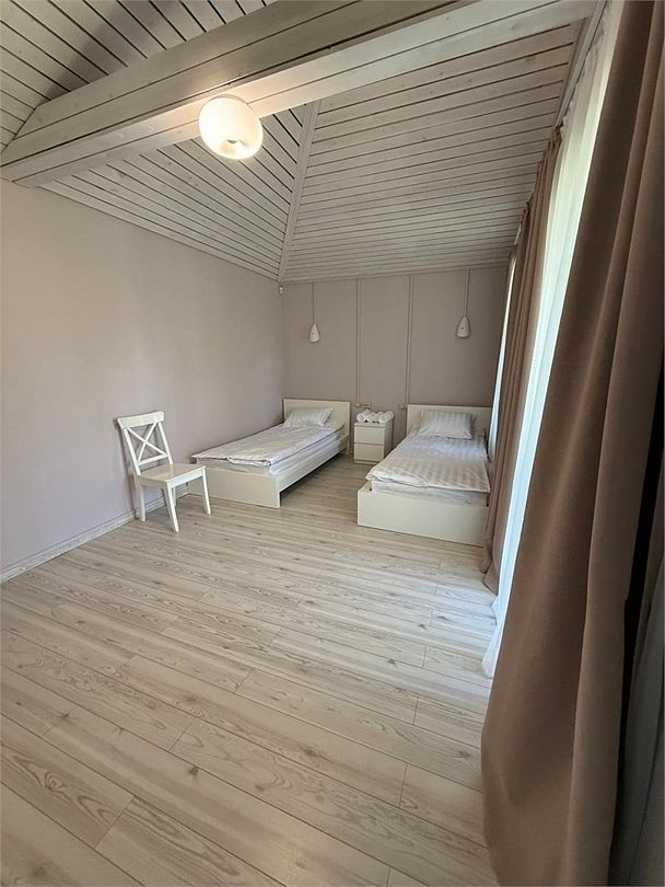 Преимущество коттеджа в том, что его можно разделить на 2 части, в каждой из которых будет 3 изолированные спальни, отдельная кухня-гостиная и санузел. Идеально подходит для больших компаний. Так же в доме есть 2 террасы и своя мангальная зона.