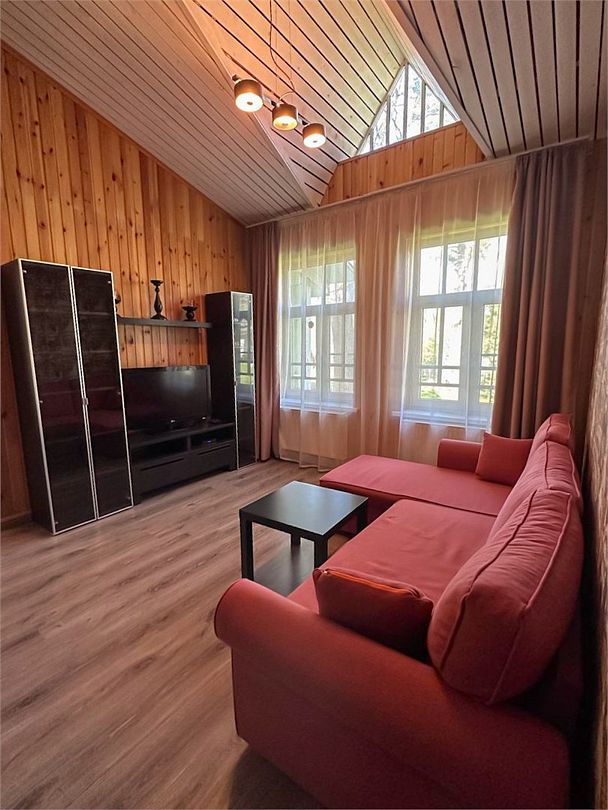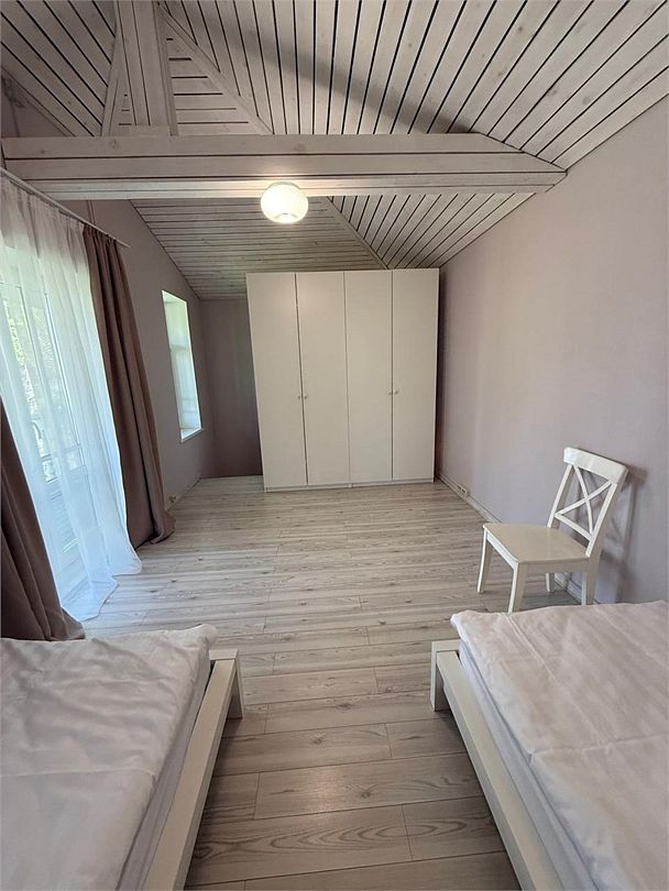На первом этаже 1 изолированная спальня, уютная кухня и ванная комната. На втором этаже просторная спальня с большим шкафом для одежды и балконом. Номер оснащен всем необходимым для комфортного проживания, а на кухне есть всё для готовки.