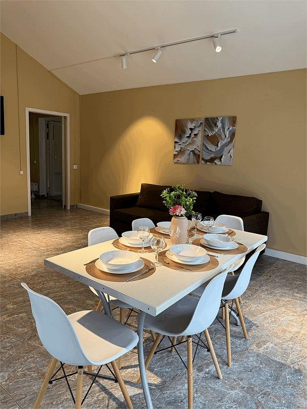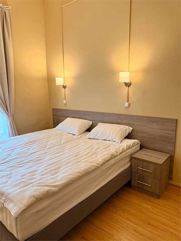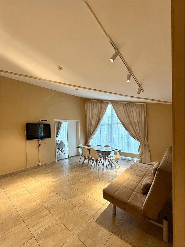 В гостиной диван-кровать, где можно разместить еще 2 человека. Апартаменты отлично подходят для тех, кто хочет отдохнуть от домашнего быта и готовки. Номер без кухни.