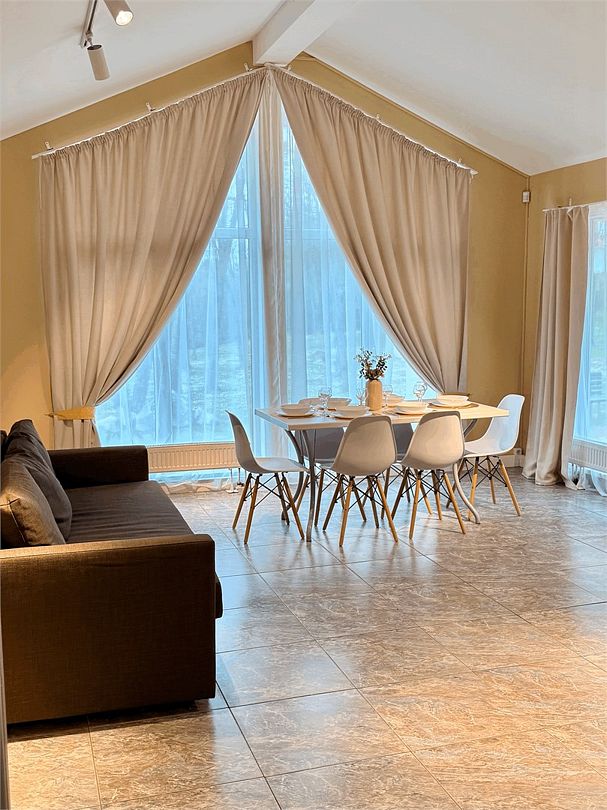 Коттедж с 3 изолированными спальнями и просторной кухней-гостиной с панорамными окнами.
