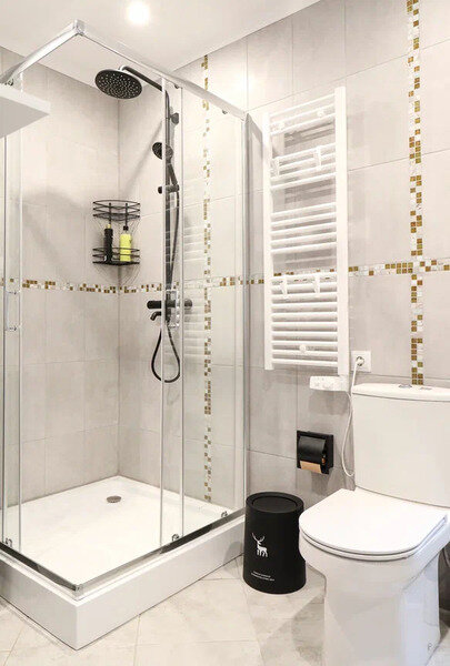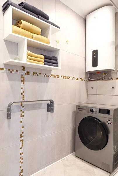 - ванная - душевая кабина, водонагреватель, полотенца, фен, стиральная машина