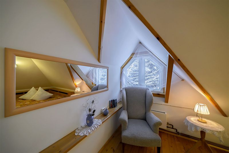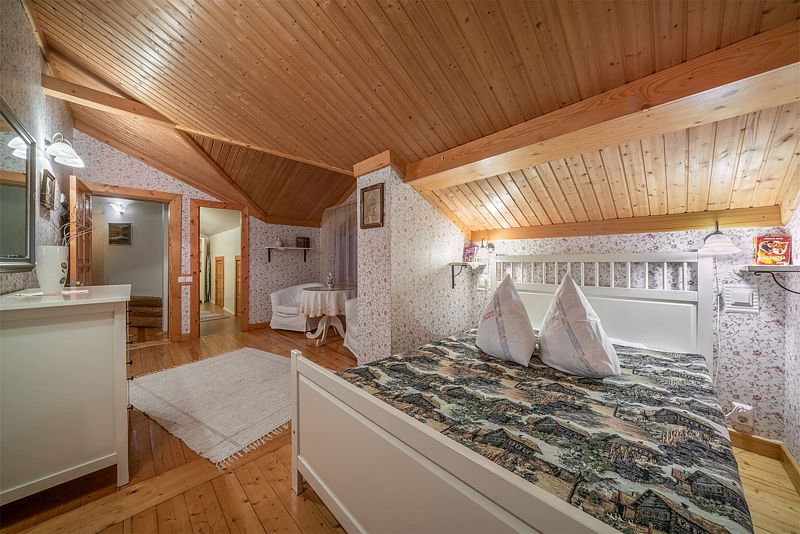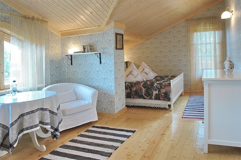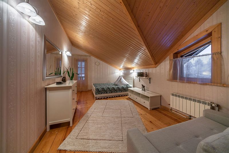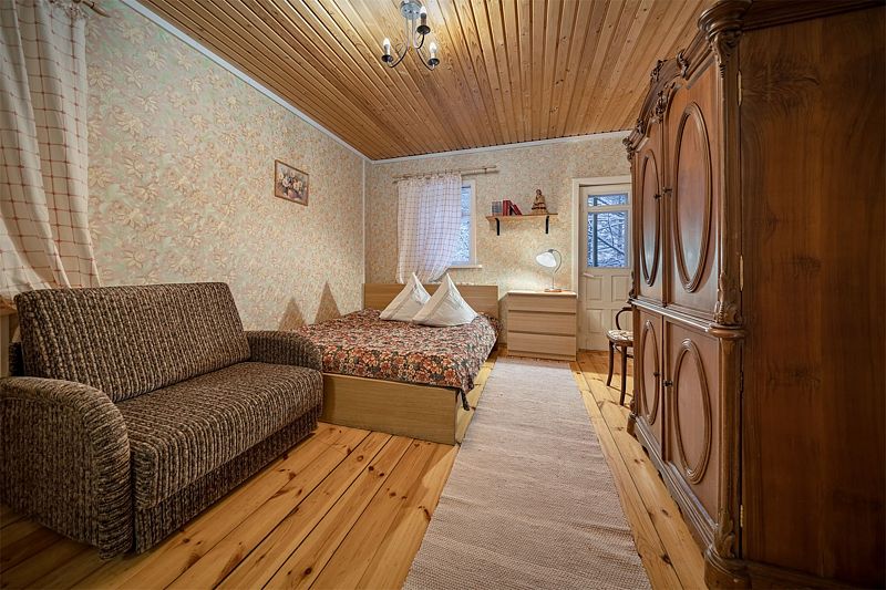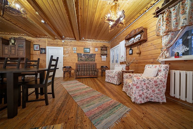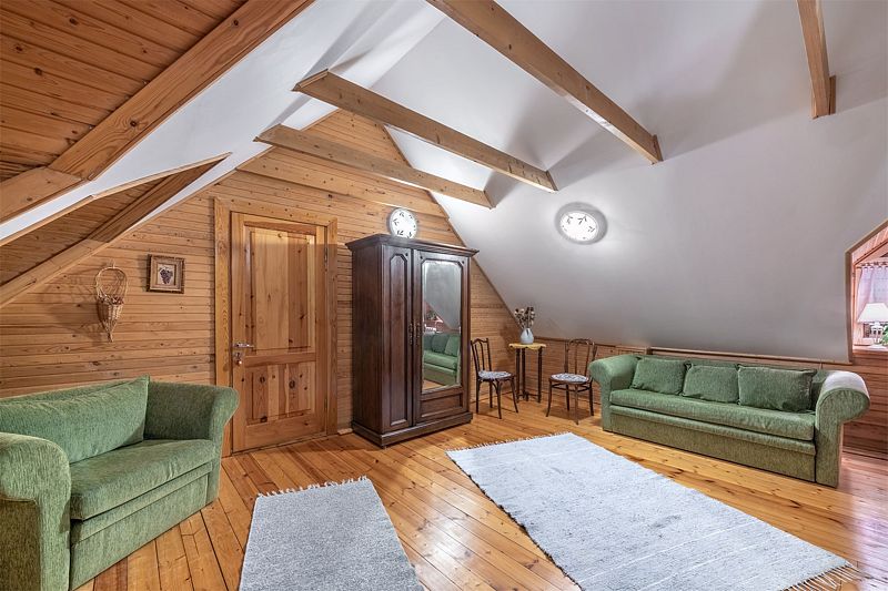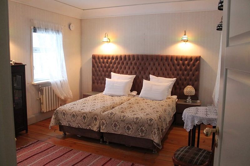 Двухкомнатный номер Люкс расположен в корпусе гостиницы под названием «Трактир». Номер подойдёт для комфортного размещения семьи. Мягкая мебель в гостиной может быть использована в качестве дополнительного размещения.