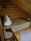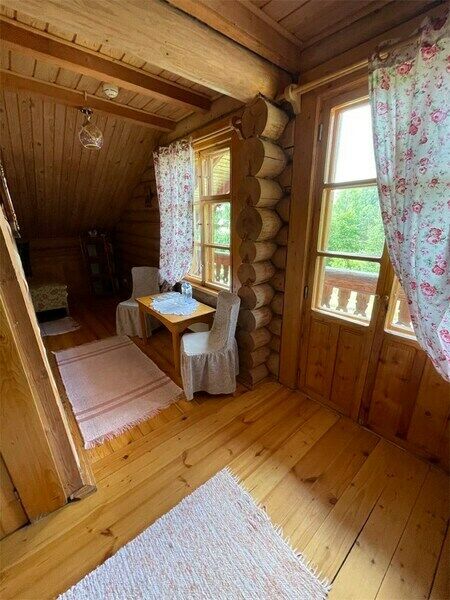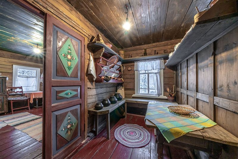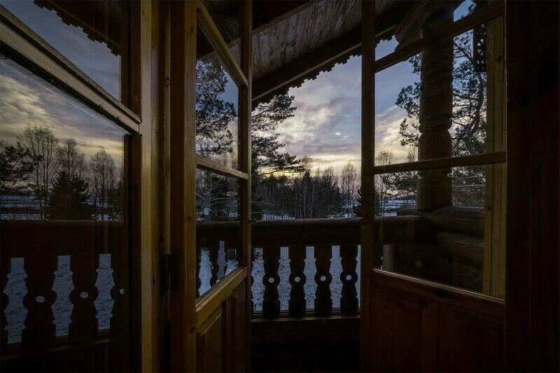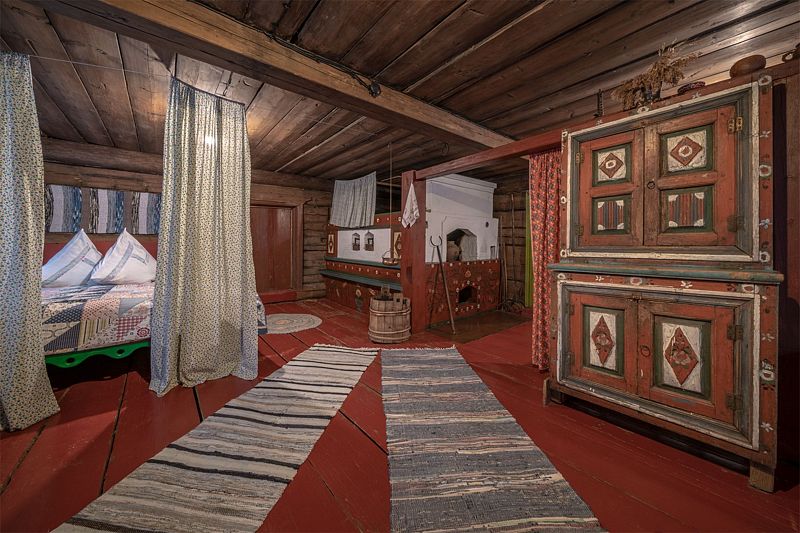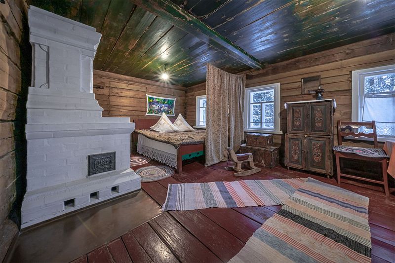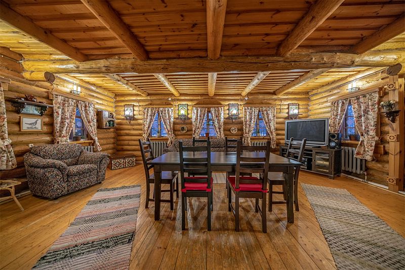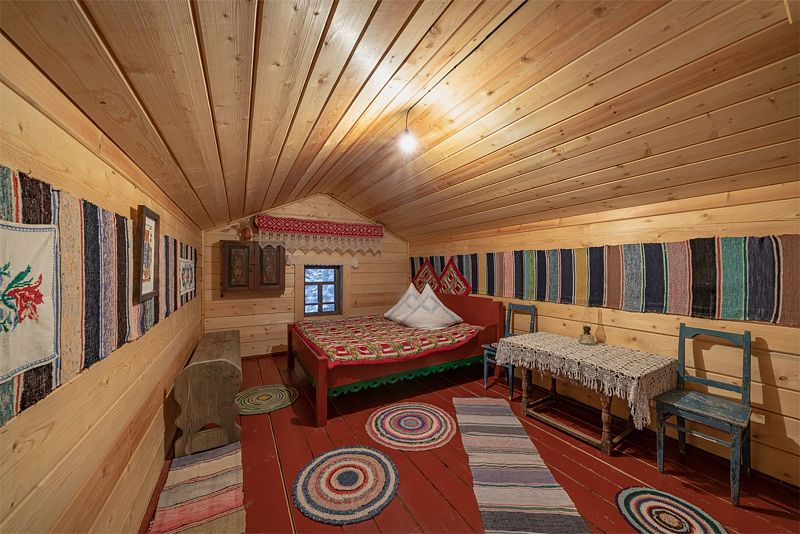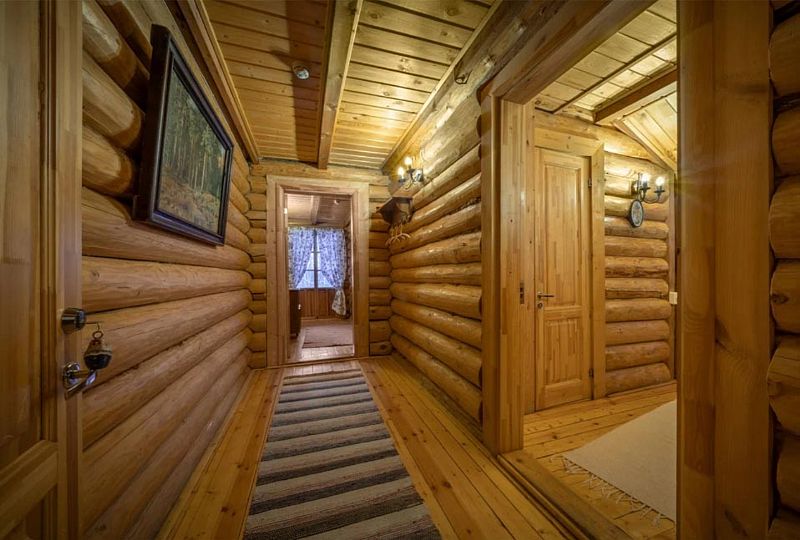 В номерах предусмотрена необходимая мебель для отдыха, есть электрический чайник, мини-холодильник и собственный санузел с душем и туалетными принадлежностями. В домах дополнительно оборудованы уютные гостиные с камином и телевизором. Интерьер в избах выполнен согласно настоящему крестьянскому быту. В усадьбе обустроен причал к реке, есть собственная бильярдная.