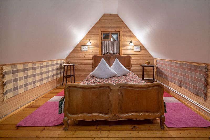 Номера с одной двуспальной кроватью расположены в корпусе «Трактир". Каждый номер уникален по своему и оснащен мини холодильником и чайной станцией. Допускается размещение детей до 4х лет на основной кровати без доплат. Кроватка предоставляется по запросу.