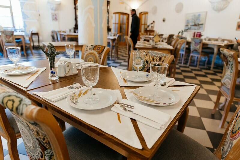Интерьеры номеров выполнены в сдержанных спокойных тонах, множество декоративных артефактов ручной работы: картины, керамика, антикварная и современная мебель, расписанная вручную — каждый номер по-своему уникален.