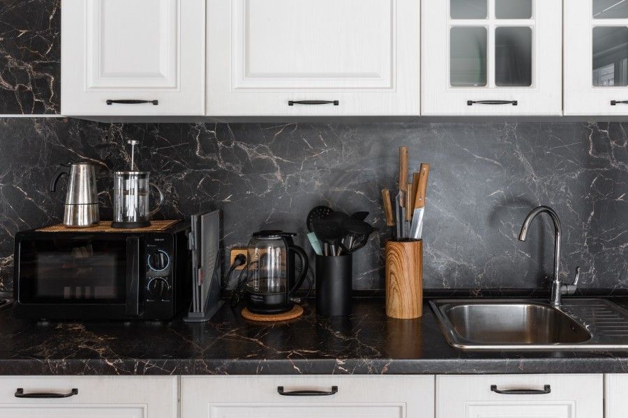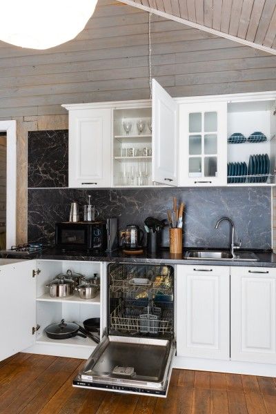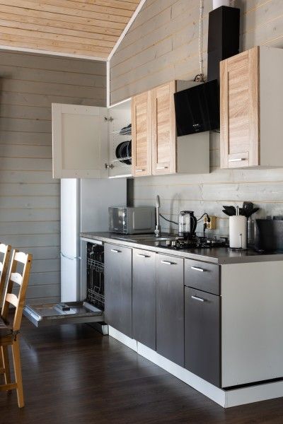 Полноценная кухня, раскладной обеденный стол, двухкамерный холодильник с морозильной камерой, посудомоечная машина, газовая варочная панель, микроволновая печь, электрический и заварочный чайник, кофемашина, вся необходимая посуда для приготовления пищи.