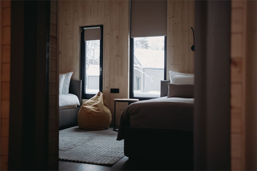 Вариант размещения подходит для компаний или семей с детьми старше 5 лет. Двухэтажная вилла площадью 144 кв.м. с тремя изолированными спальнями, просторной кухней-гостиной с камином, а также дополнительной зоной отдыха на втором этаже с панорамным окном - удобные кресла с кофейным столиком позволят с комфортом любоваться живописным видом на лес и озеро. Во всех виллах предусмотрен отдельный вход и терраса, также смотрящая на озеро. В каждом номере вы найдете все что нужно для действительно комфортного проживания: удобная мебель, две односпальные кровати в одной спальне и две спальни с двуспальной кроватью, 2 просторные ванные комнаты с душевой кабиной, полотенцами и феном, 2 телевизора, персональный сейф.Услуги и удобства