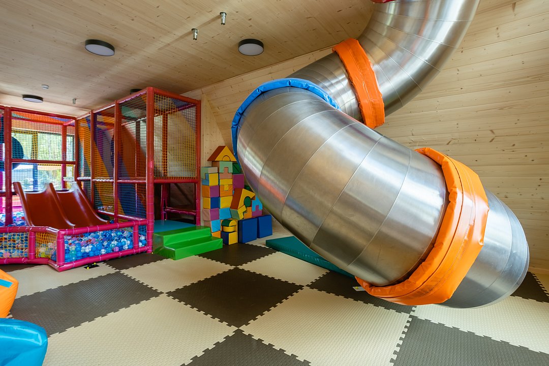 Курорт «MARJA Villas & Spa» предлагает маленьким гостям увлекательный детский клуб с профессиональными няньками. Это безопасное пространство наполнено различными активностями: познавательными мастер-классами, настольными играми и интересными книгами. На территории также расположена горка-труба, по которой можно спуститься на первый этаж, а также сухой бассейн, который станет любимым местом детей.