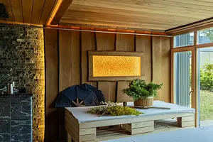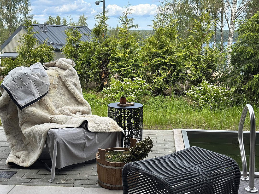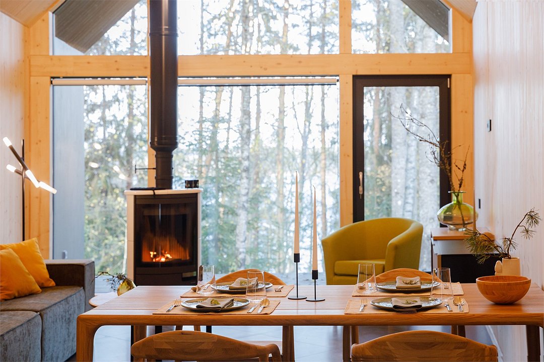 Вариант размещения подходит для компаний или семей с детьми старше 5 лет. Двухэтажная вилла площадью 144 кв.м. с тремя изолированными спальнями, просторной кухней-гостиной с камином, а также дополнительной зоной отдыха на втором этаже с панорамным окном - удобные кресла с кофейным столиком позволят с комфортом любоваться живописным видом на лес и озеро. На вилле предусмотрен отдельный вход и терраса, также смотрящая на озеро. Уникальной особенность виллы является персональный чан на живом огне, расположенный на террасе летней кухни. Обращаем ваше внимание, что необходим предварительный заказ растопки чана минимум за 5 часов до сеанса по телефону +7 812 56 56 444 - услуга предоставляется комплиментарно. На вилле вы найдете все, что нужно для действительно комфортного проживания: удобная мебель, две односпальные кровати в одной спальне и две спальни с двуспальной кроватью, 2 просторные ванные комнаты с душевой кабиной, полотенцами и феном, 2 телевизора, персональный сейф. Уникальный микроклимат виллы поддерживают увлажнители в каждой спальне.Услуги и удобства