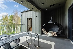 Многоуровневая вилла-студия с понижающимся полом и панорамным остеклением, невероятно высокими потолками и продуманным скандинавским дизайном станет отличным местом для романтического уикенда или уединенного отдыха.Услуги и удобства