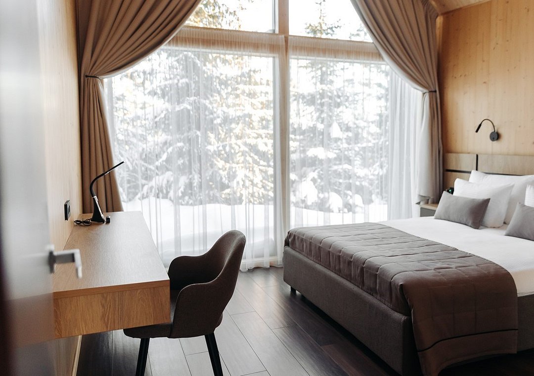 Wi-Fi, светильник, фен, электронные замки, кофемашина, микроволновая печь, утюг, ванная комната, халаты, тапочки, гигиенические средства, косметические средства, терраса, двуспальная кровать, две односпальные или большая двуспальная кровать, гладильная доска, диван, кресла, стулья, шкаф для одежды, журнальный столик, обеденный стол, зеркало, звуконепроницаемые стены и окна, сейф, мягкая мебель, косметическое зеркало, обеденная зона, отдельный вход в номер, душ, две спальни, высокие потолки, меню подушек, кухонная посуда, стаканы, столовые приборы, кофейный столик, тумба, туалетные средства, панорамные окна, внутренний телефон, мини-холодильник, телевизор со Smart TV, вид на лес, пуфик, рабочий стол, чайная станция, фумигатор, вешалки-плечики, бутилированная вода, шапочка для душа, зеркало в полный рост, прачечная (за дополнительную плату), не раскладной диван, без питомцевВ номере