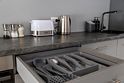В кухне: холодильник, посудомойка, плита, вытяжка, микроволновка, чайник, тостер, вся необходимая посуда, сахар, соль, специи.