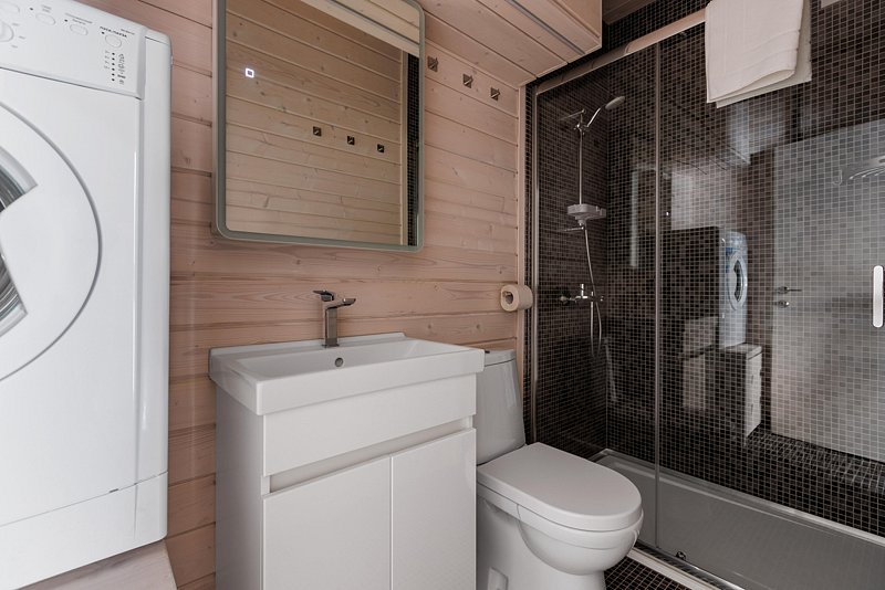 Не выбраноДостоинстваЕсть просто все, от ✂️ до камина. Очень удобная кровать, везде тёплый пол и кабельное ТВ. А ещё есть посудомойка!