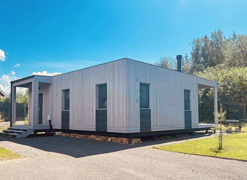 Новый современный комфортабельный дом для отдыха в аренду на берегу лесного озера «Маролампи»! 31км от КАД, 200м до пляжа, полностью оборудованная кухня, премиальное белье, панорамные окна, настольные игры, русская баня, детская площадка с батутом, парковка у дома.
