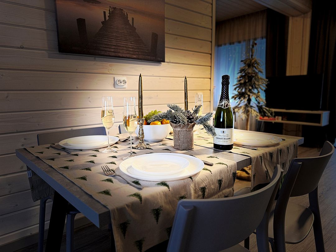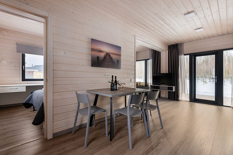В холодное время года вы сможете насладиться уютом и теплом, устроившись у камина с бокалом вина и наблюдая за тем, как потрескивают дрова и разгорается пламя. А ещё можно отправиться в лес, покататься на лыжах, поиграть в снежки или посетить близлежащие курортные зоны Игора, где есть всё для активного отдыха: горные лыжи, ватрушки, коньки, рестораны и спа.