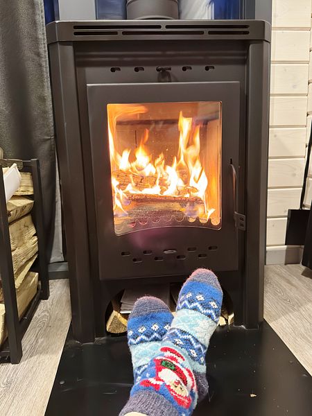 Тёплый пол, печь-камин.