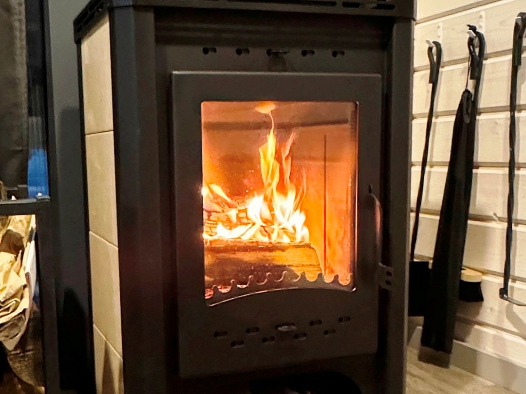 Кондиционер, тёплый пол, печь-камин.