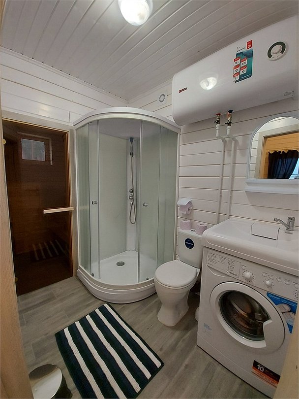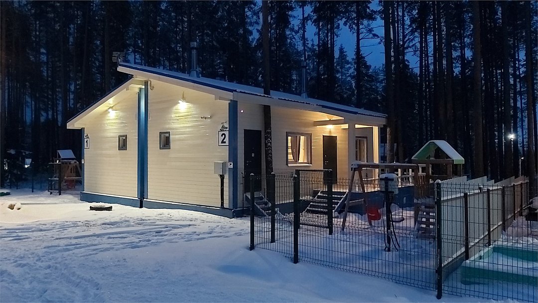 Комнаты в доме: 2 спальни с двуспальными кроватями, кухня-гостиная (есть посудомойка), санузел со стиральной машиной, сауна, дровник, третье спальное место на антресоли, зона отдыха с пуфиком и телевизором на антресоли. По периметру дома большая терраса. Территория: У каждого дома своя огороженная и освещенная территория Площадь участка 6 соток На территории есть: детская площадка, мангальная зона, уличная мебель Заезд/выезд: Заезд с 16.00, выезд до 13.30 Заезд бесконтактный по пин-коду. Рядом: - Финский залив, 15-20 минут пешком, 3 мин на машине - Озеро Красное с песчаным пляжем и кристально чистой водой, 5-10 мин на машине - Продуктовый магазин "Лента" в 10 мин пешком Пользование сауной и дрова к ней входят в указанную стоимость. Постельное белье, полотенца, шампуни и мыло также входят в указанную стоимость, ничего дополнительно оплачивать не надо. В домах есть настольные игры: игральные карты, мафия, шахматы. Проживание с животными возможно по согласованию со службой бронирования не во всех домах и за отдельную оплату.Услуги и удобства