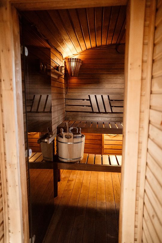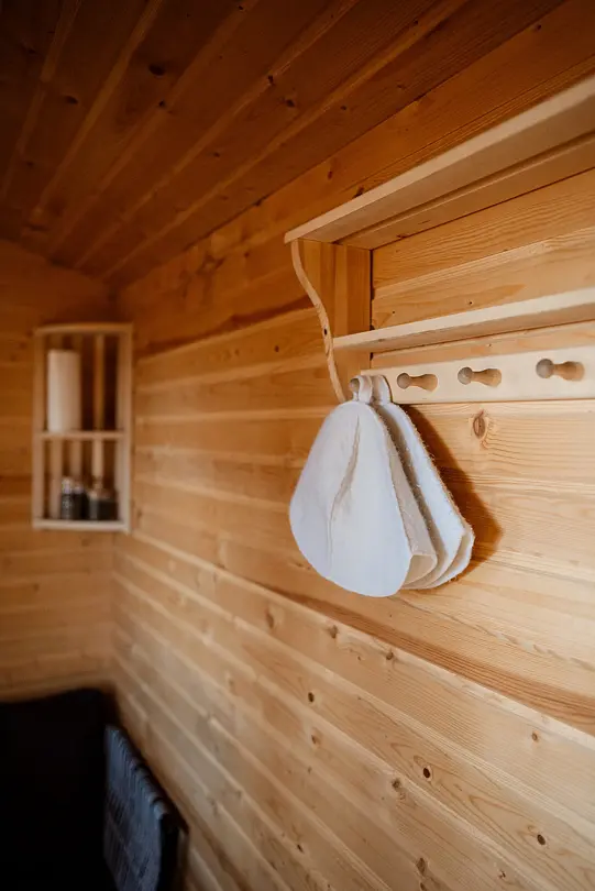 Инфраструктура: тапочки, купель, полотенца, шапочки, душ, халатыРасположена недалеко от берега Финского залива. Внутри бани есть зона отдыха, парная, санузел, горячая купель снаружи.