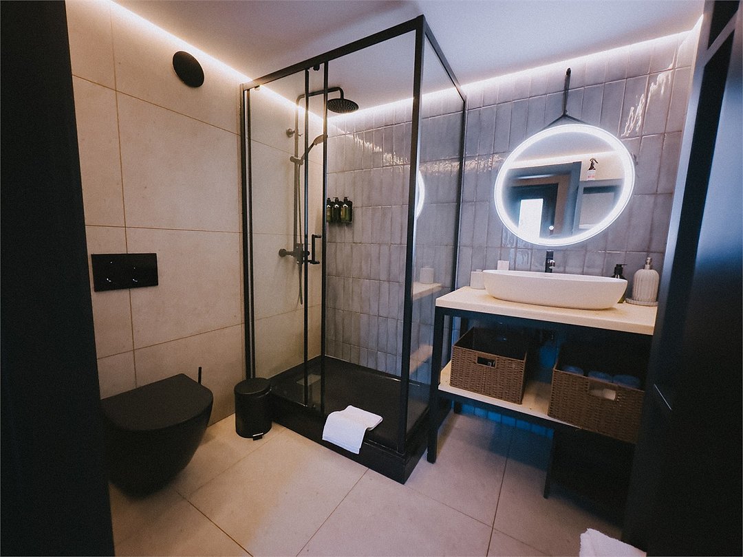 Геокупол Люкс 52 кв.м на второй линии Финского залива. В доме панорамное остекление с видом на залив, собственная терраса и мангальная зона. В куполе есть современный санузел, большая двуспальная кровать и двуспальная кровать на втором уровне, кухня с холодильником и микроволновой печью, чайная/кофейная станции, зона отдыха, виниловый проигрыватель, станция Алиса и бесплатный мини-бар. Дистанционное управление климат-контролем, пилетной печью и кондиционером. Максимальное количество гостей – 4 человека, возможно проживание с животными.Услуги и удобства