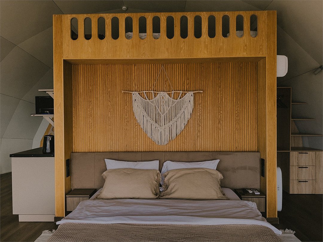 музыкальный центр, Wi-Fi, кондиционер, настольные лампы, фен, микроволновая печь, санузел, банные принадлежности, халаты, банные полотенца, тапочки, гигиенические средства, косметические средства, терраса, две двуспальные кровати, кресла, тумбы, стулья, шкаф для одежды, вешалки, журнальный столик, обеденный стол, зеркало, комод, мебельный гарнитур, кухня, набор посуды, обслуживание номеров, чайник, унитаз, раковина, питьевая вода, обеденная зона, гостиная зона, отопление, отдельный вход в номер, душ, высокие потолки, кухонная посуда, стаканы, столовые приборы, стол, мангал, панорамные окна, мини-холодильник, вид на залив, умная колонка, уборка номера, веранда, затемняющая штора, окна от пола до потолка, можно с питомцами, миска, пакетик для выгула, уличная мебельВ купольном шатре